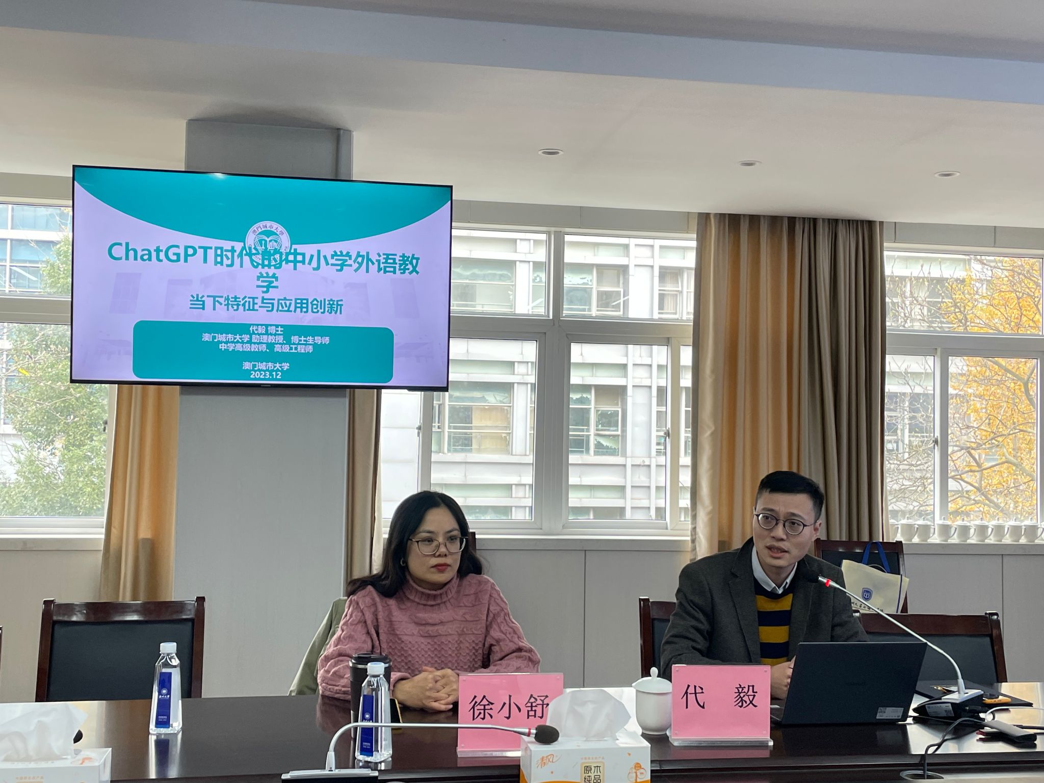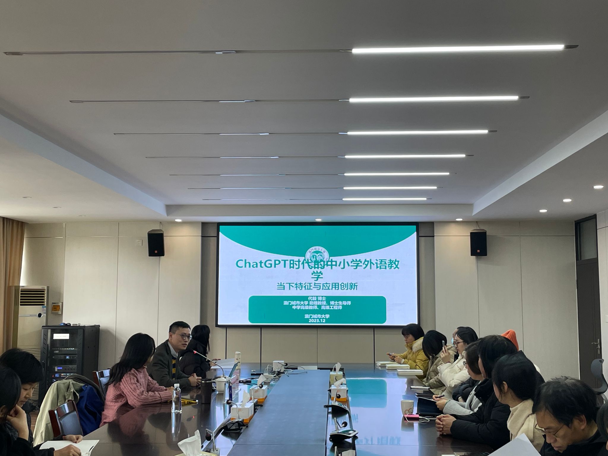 2023年12月20日下午,由ylg060net永利主办的“ChatGPT时代的中小学外语教学:当下特征与应用创新”讲座顺利召开。此次讲座由澳门城市大学教育学院助理教授、博士生导师、华南师范大学教育云工程技术中心特聘研究员、人民教育出版社重点实验室兼职研究员、ylg060net永利兼职教授代毅主讲,讲座由徐小舒副教授主持,我院部分师生积极到场聆听。
