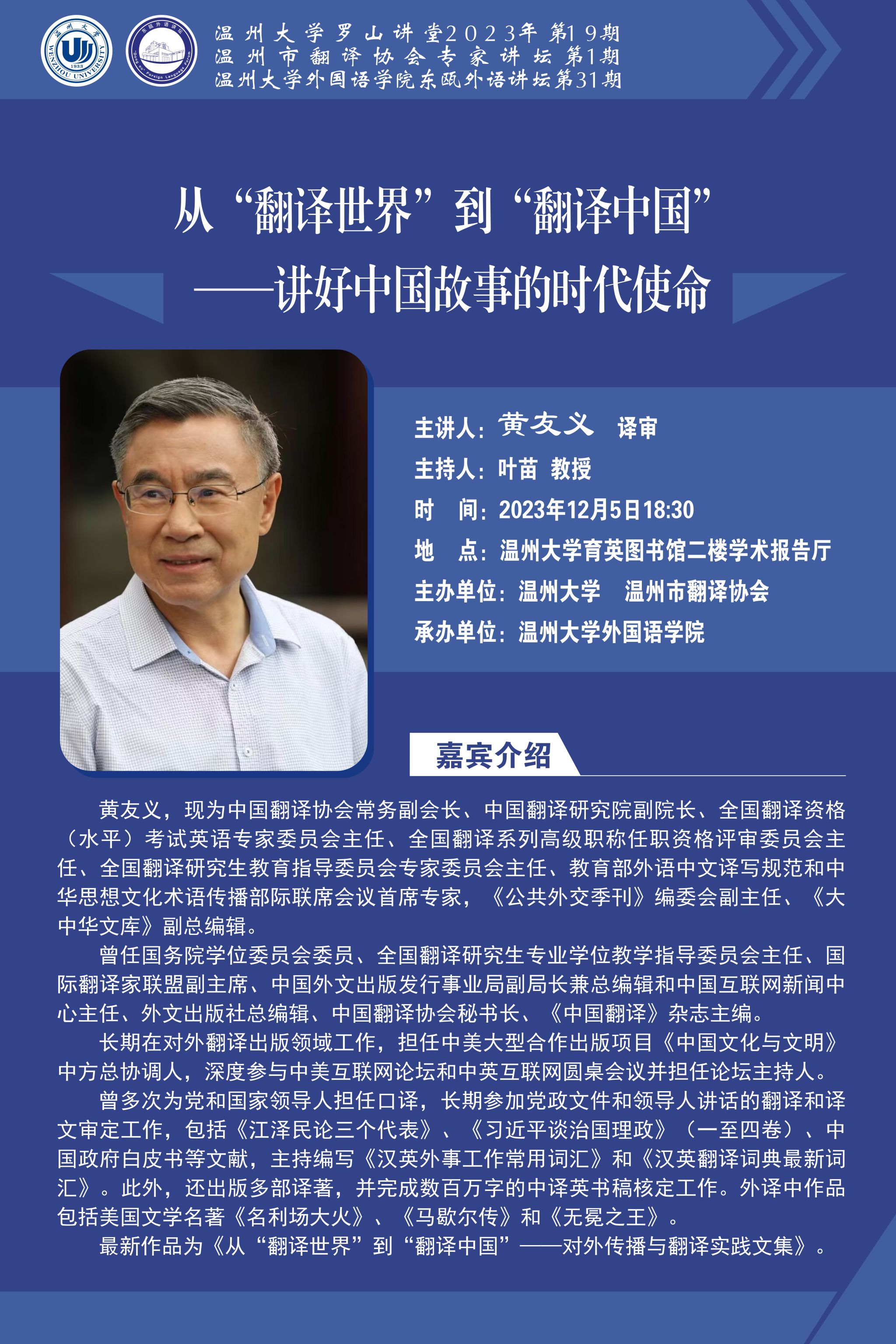 东瓯外语讲坛第31期预告:从“翻译世界”到“翻译中国”——讲好中国故事的时代使命