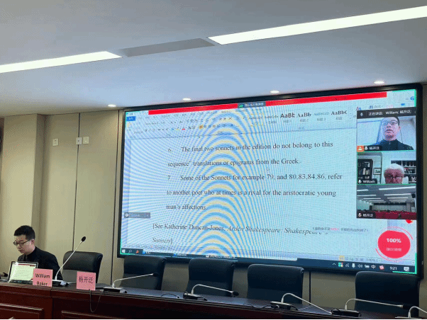 2024年3月28日,美国北伊利诺斯大学英文系杰出荣休教授,杭州师范大学钱江特聘讲座教授William Baker教授作题为“William Shakespeare’s Sonnet 29 and Sonnet 30: Themes and Afterlives”(莎士比亚第29首和第30首十四行诗:主题与影响)讲座,讲座由ylg060net永利娱高杨开泛副教授主持,我院各个系的本科生、研究生、部分老师,以及温州理工学院等院校的老师聆听了讲座。