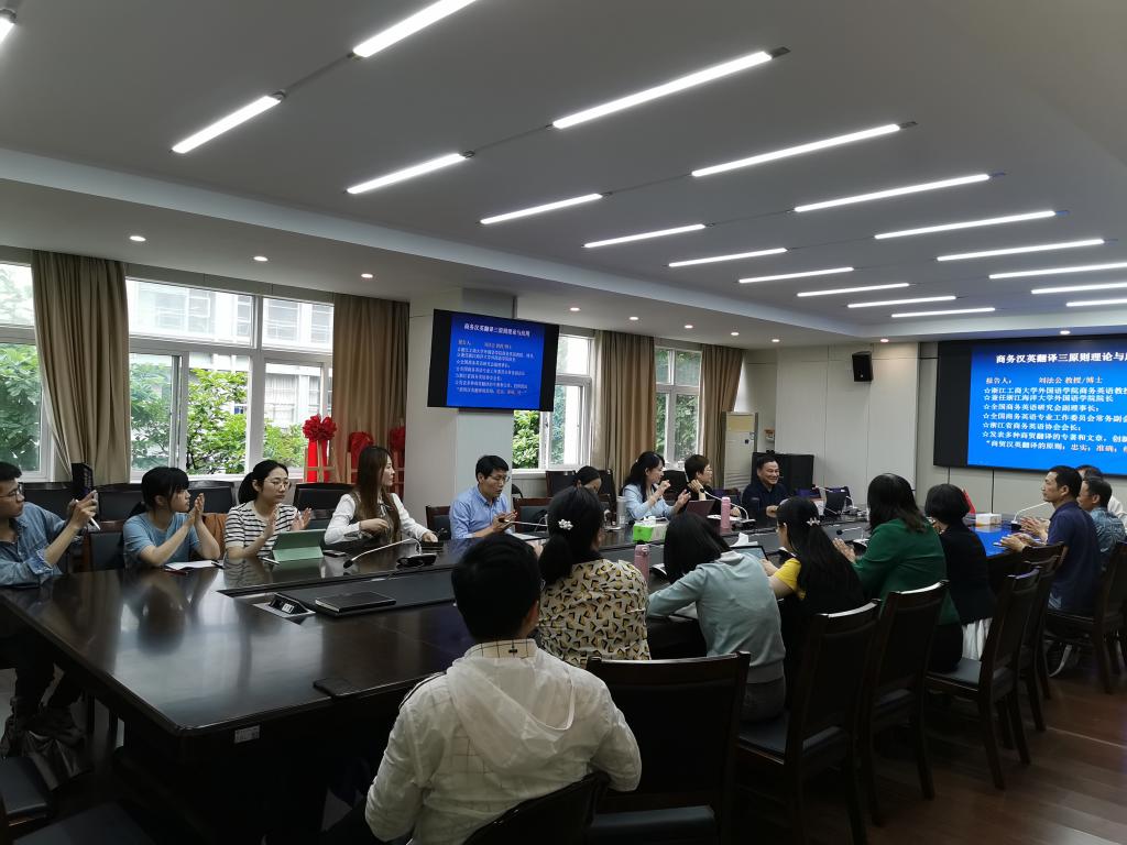 5月20日下午,浙江工商大学刘法公教授应邀于外语楼212会议室为我院师生做了一场题为《商务汉英翻译三原则理论与应用》的学术报告。毛继光教授主持报告会。