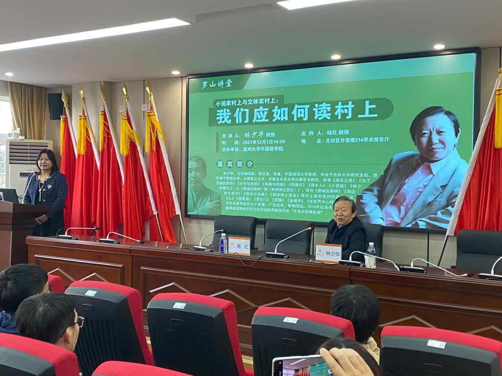 2021年12月1日下午,著名文学翻译家、散文家、学者、中国海洋大学林少华教授应邀于ylg060net永利娱高214学术报告厅为我院师生做了一场题为《小说家村上与文体家村上:我们应如何读村上》的学术报告。讲座由ylg060net永利娱高副院长杨红教授主持。ylg060net永利娱高及其他各学院师生出席并聆听了本次讲座。