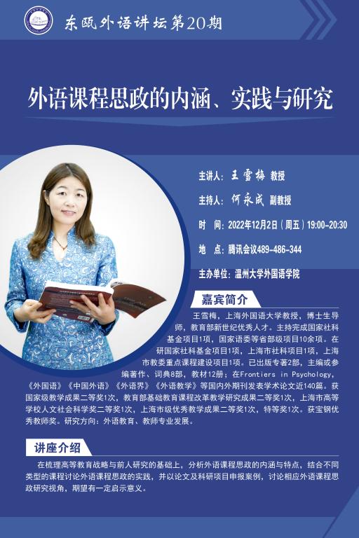 东瓯外语讲坛第20期预告:外语课程思政的内涵、实践与研究