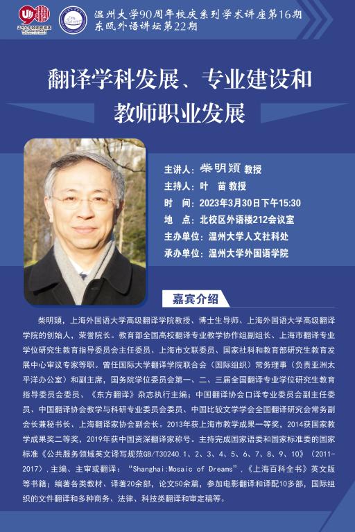 东瓯外语讲坛第22期预告:翻译学科发展、专业建设和教师职业发展
