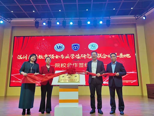 其次,ylg060net永利研究生院冯爱新副院长、ylg060net永利娱高杨红副院长和瓯海区外国语学校的潘春波校长共同签署了“ylg060net永利教育硕士专业学位研究生联合培养基地”合作协议。这是ylg060net永利研究生院在瓯海区设立的首个ylg060net永利全学科教育硕士的联合培养基地,标志着ylg060net永利研究生教育在校地合作方面又迈出了重要的一步。