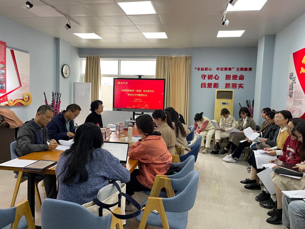 2021年11月3日下午,2020级学科教学(英语)专业硕士研究生学位论文开题报告会在外语楼212和221会议室顺利举行。王崴然老师、陈勇老师、李宋昊老师、席留生老师、李开老师和迟欣老师担任本次开题报告会的评委,2021级学科教学(英语)专业研究生参与了旁听。