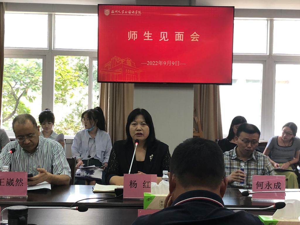 在中秋与教师节双节来临之际,为了让2022级硕士研究生新生对外院有更深的了解,促进导师与新生之间的近距离接触,9月9日下午,我院在外语楼212会议室成功召开22级硕士研究生与硕士生导师的见面会。学院副院长杨红、硕士生导师以及22级学科教学(英语)全体硕士研究生参加了本次会议。