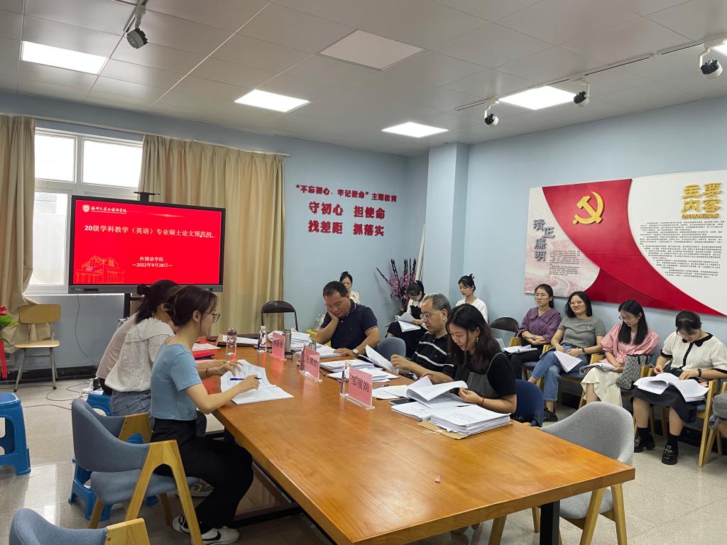 2022年9月28日下午,20级学科教学(英语)专业硕士研究生学位论文预答辩在外语楼210、216、221顺利举行。此次答辩共分为三组,王崴然老师、李新德老师、邹丽娟老师、陈勇老师、毛继光老师、张璐老师、席留生老师、李开老师和林秋玲老师分别担任这三组的评议组专家。21级、22级学科教学(英语)专业同学旁听了此次预答辩。