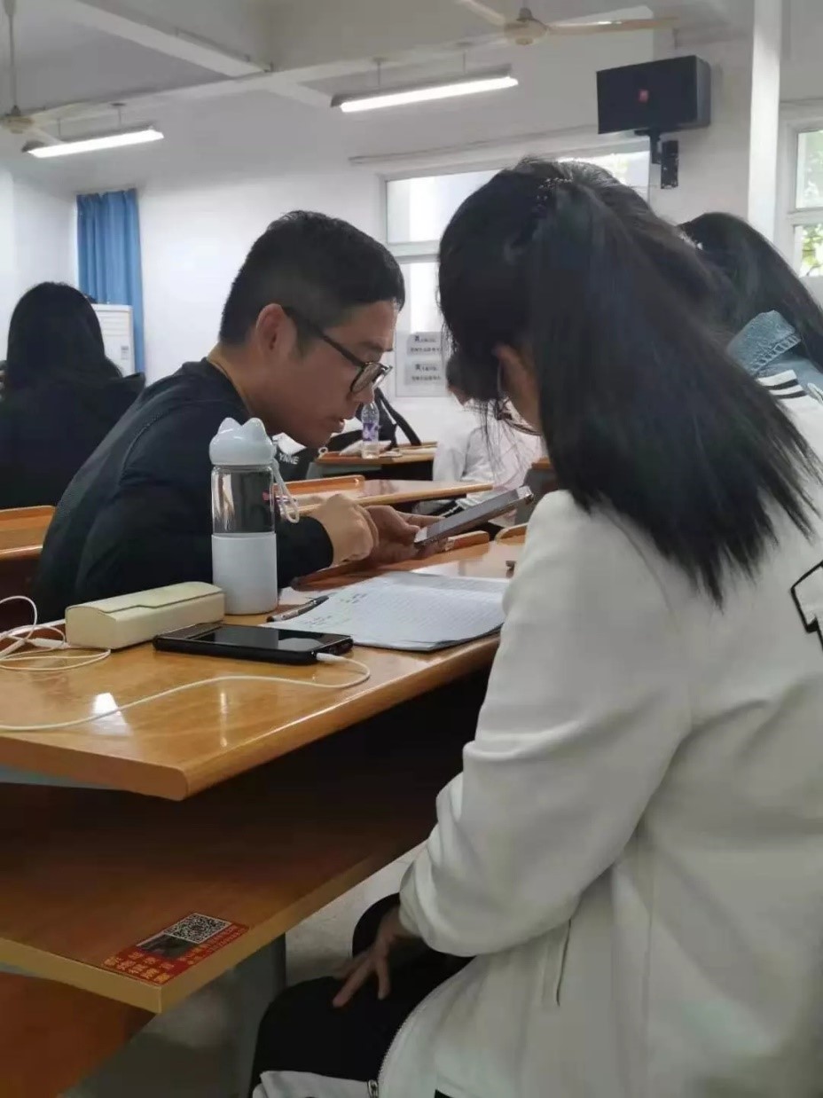 在纠音活动开始前,毛老师带领着党员老师们一起认真研究分析了英语语音纠音材料的重难点,并安排好每位党员结对纠音的学生。