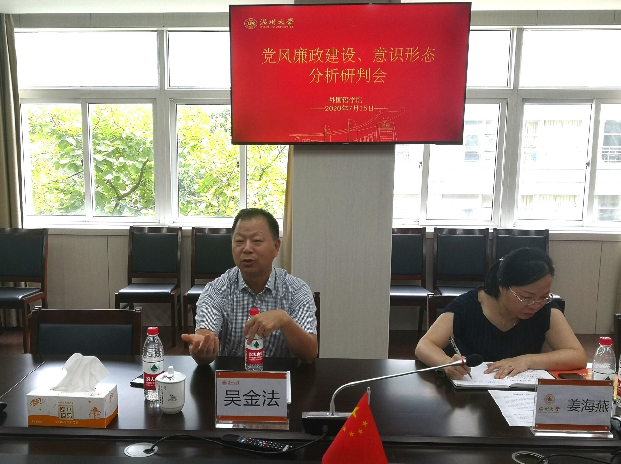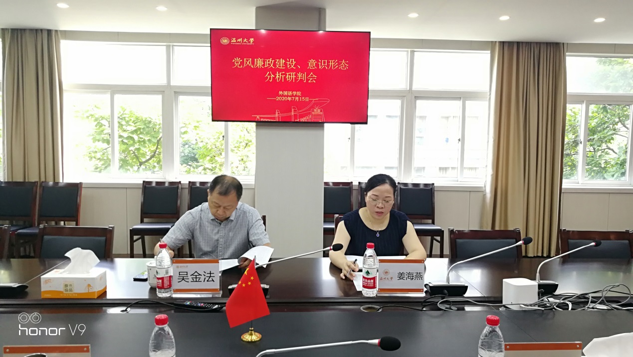 7月15日上午,ylg060net永利娱高在211会议室召开2020年上半年党风廉政建设分析暨意识形态分析研判会。学院领导班子全体成员参加了会议,学校党委吴金法副书记出席了本次会议。