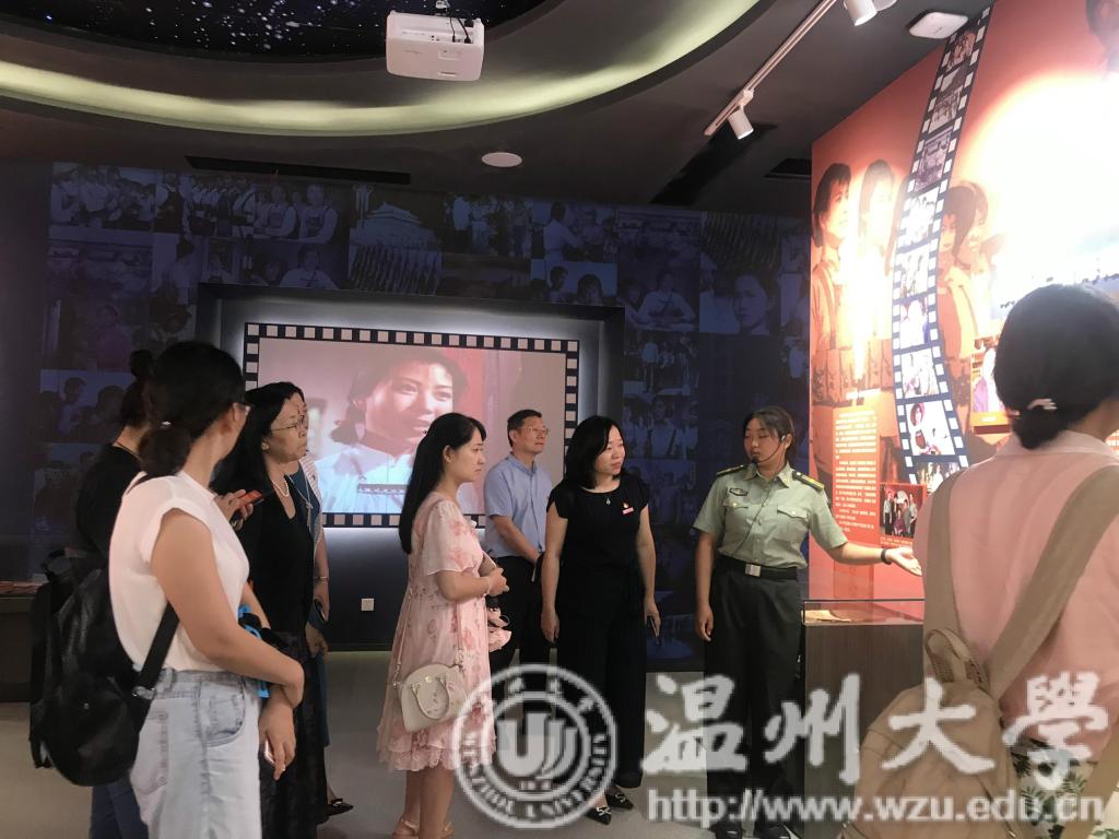 2020年9月16日星期三下午,在ylg060net永利党委书记姜海燕同志带领下,外语教工第一支部,教工第二支部教师党员毛继光教授,杨红教授,支部书记汲寿荣,工会主席王廷达等一行人迎着烈日走进“海霞学院”,参观洞头先锋女子民兵连纪念馆,开展“学海霞精神,做时代先锋”主题党日活动。