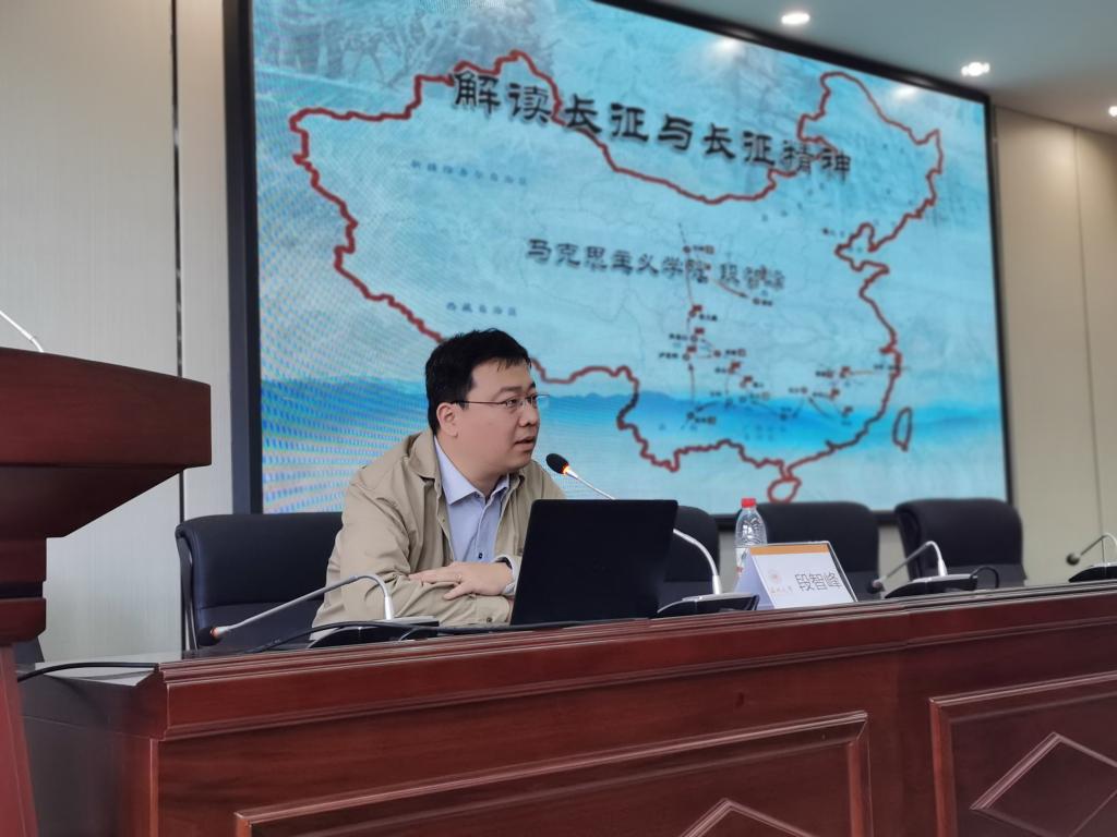 为贯彻落实师生党员理论学习任务,引导党员铭记历史,传承红色精神,激发爱国热情,11月4日,ylg060net永利娱高全体师生党员在外语楼214报告厅开展专题学习会,集中学习《解读长征与长征精神》。本次学习由马克思主义学院段智峰教授主讲。