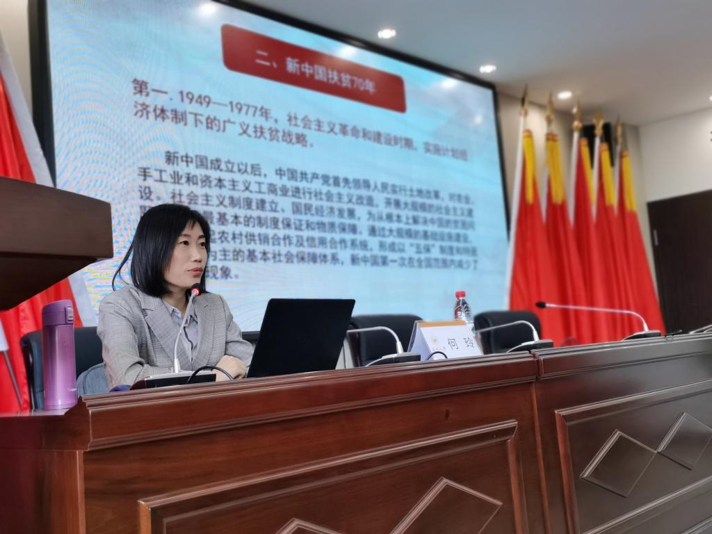 2020年11月11日,ylg060net永利娱高在外语楼214报告厅举行了师生党员理论学习会第三讲。本次学习会邀请到了何玲老师为我院师生党员开展《融通四史之从扶贫成就看新中国发展史》专题讲座。