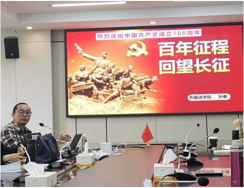 2021年,是中国共产党成立100周年,是“十四五”开局之年,也是全面建设社会主义现代化国家新征程开启之年。为了从党的百年伟大奋斗历程中汲取继续前进的智慧和力量,学院教工第二党支部于4月21日中午12:40在外语楼212会议室开展了“学党史、感党恩、当先锋”的主题党日学习活动,会议由支部书记汲寿荣老师主持,19位支部党员教师参加。