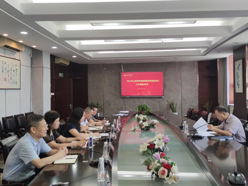 7月12日上午,在南校行政楼419会议室召开学院2021年上半年党风廉政建设暨意识形态工作专题分析会。学院党委书记姜海燕老师、副书记陈勃老师,副院长杨红老师、副院长何永成老师、党委委员毛继光老师等出席本次会议。校党委副书记吴金法老师全程参加会议。会议由学院党委书记姜海燕老师主持。