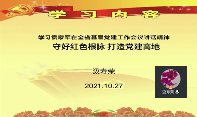 2021年10月27日晚上,ylg060net永利娱高第二教工党支部通过线上腾讯会议的形式开展了“支部理论学习会暨百年足迹-党史知识我来讲”主题党日活动。会议由支部书记汲寿荣同志主持,共有两项议程,全体支部党员教师均准时参会。
