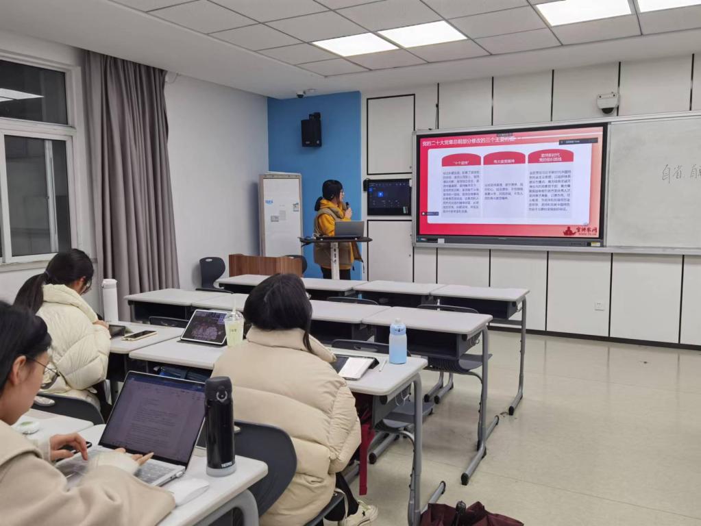 4月4日学生第四党支部在外语楼212会议室进行了主题党日活动。党支部书记黄娜娜同志以“学习党的二十大精神——学习领会党的二十大党章修改的重大意义与主要内容,增强党性修养”为主题,从党的二十大党章修改的重要意义、主要内容,如何增强党性修养三个方面详细介绍了党章修正的必要性和重要性。会上指出,我们要坚持新时代党的组织路线、伟大建党精神、“十个坚持”,贯彻党的二十大报告提出的重要观点和重要论断。最后,黄娜娜同志总结,我们要进一步坚定理想信念,深化对伟大建党精神的认识,为全面建设社会主义现代化国家、全面推进中华民族伟大复兴而团结奋斗,要做好新时代共产党人楷模和先锋战士,并且用外语讲好中国故事。