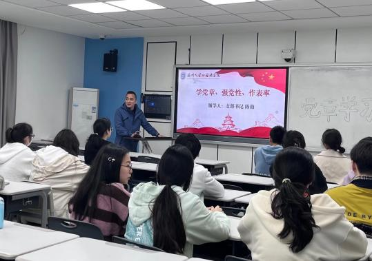 3月29日,学院教工第一党支部在外语楼302教室召开主题党日活动。支部书记毛继光同志向全体党员老师传达了学校党委近期的宣传理论动态的精神,并提出要加强个人党史学习教育,确定每半月集中进行一次支部党史和理论学习教育活动,做到党史和理论学习教育常态化。会上,支部宣传委员童芳莉同志带领党员老师们一起学习了《近平主持中共中央政治局第三次集体学习并发表重要讲话》等文件,弘扬习近平同志指出的“两弹一星”精神、西迁精神、载人航天精神、探月精神、新时代北斗精神等伟大精神。大会最后,支部的党员老师们各抒己见,紧密结合自己的专业教学,热烈地探讨了该如何在课程教学中有效实施课程思政,以及如何合理运用AI技术支持教学等。与会党员老师认真听取文件,纷纷表示自己将紧跟党走,努力学习党的二十大的精神。
