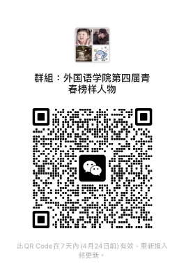 上报的材料含候选人申请表(附件1)、汇总表(附件2)和支撑材料(放在一个Word里面按照国家级、省级、市级、校级材料进行排序)。电子版邮件请以“姓名+青春榜样人物”命名,在2025年4月25日12点前发送至邮箱wyxuefeng2019@163.com,纸质版材料一式一份送至外语楼205办公室叶老师处。(有意申请者请于4月20日前扫码进群,后续将在群里通知相关事宜)