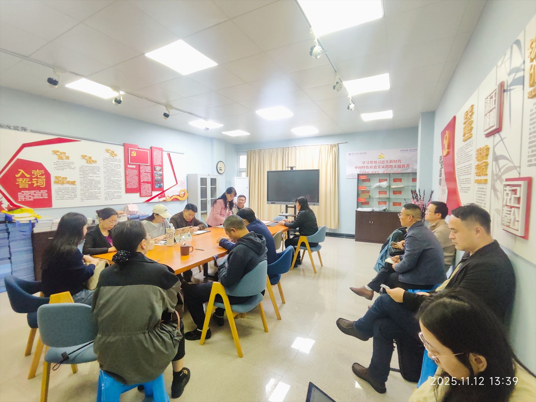 为进一步贯彻落实党的二十届四中全会精神,加强省级样板支部建设,筑牢思想根基,明确发展方向,2025年11月12日下午,ylg060net永利娱高教工第一党支部在外语楼221党员之家召开政治理论学习会议。支部全体党员参加会议,会议由支部书记何永成主持。