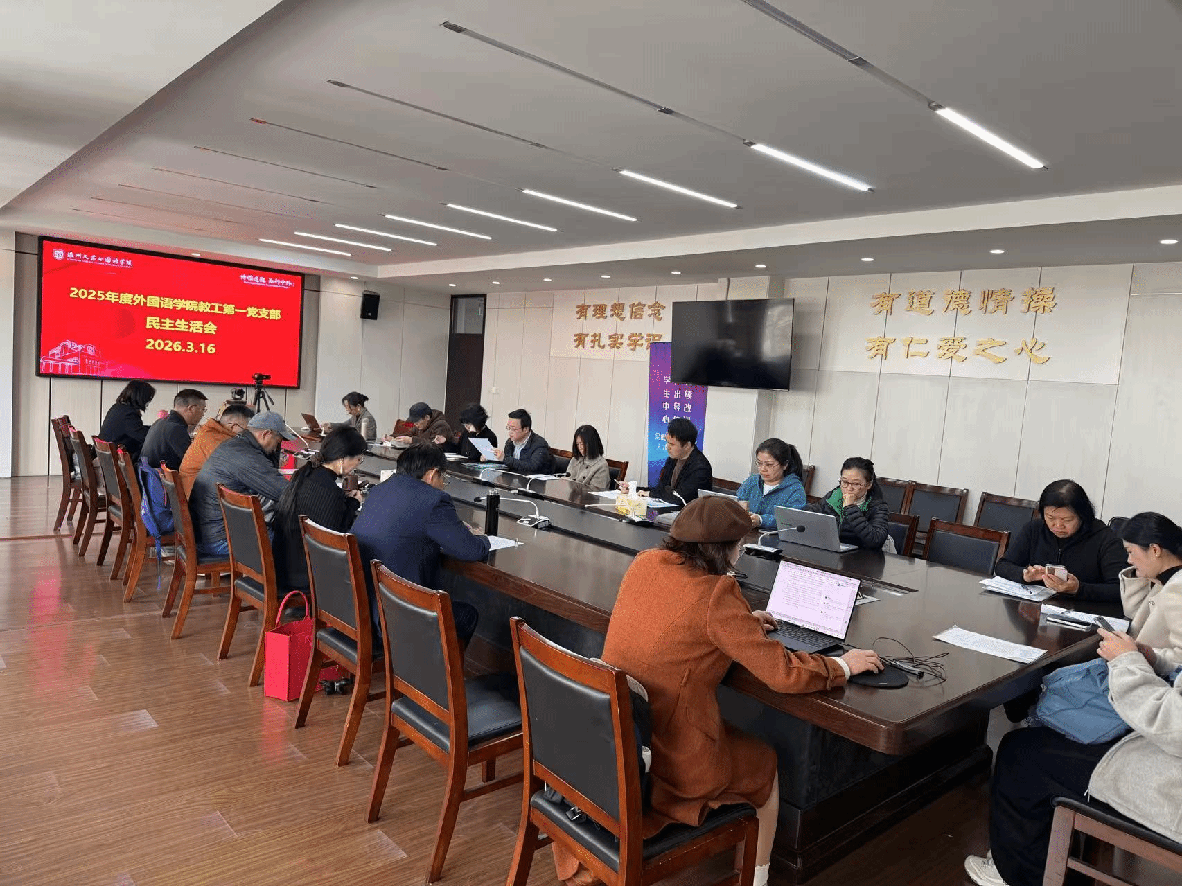 会议伊始,全体党员集中学习了2025年12月中共中央总书记习近平主持中共中央政治局民主生活会上发表的重要讲话精神,深入学习了中央八项规定精神;学习了《关于在全党开展树立和践行正确政绩观学习教育的通知》。党员老师们紧密结合学院发展实际与自身工作岗位,一致表示,要坚持用先进理论武装头脑,将学习成果转化为指导教学科研、服务地方发展的强大动力,切实做到学思用贯通、知信行统一。
