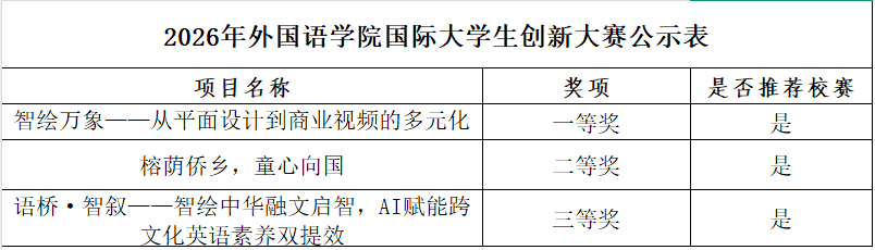 关于2026年ylg060net永利娱高国际大学生创新大赛结果的公示